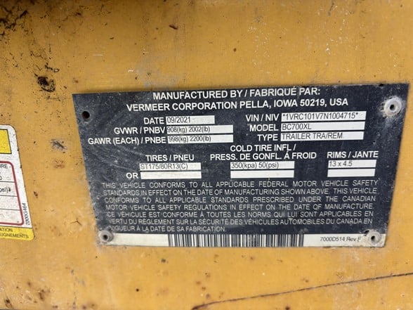 Used 2022 Vermeer BC700XL, 25hp Gas Engine, Disc Chipper, 256hrs, 1 Owner, SOLD USED AS IS, Located in Plainwell Michigan